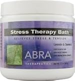 Lavender & Chamomile, Jar Stress Therapy Bath is used to relieve the body of stress, a major cause of illness and disease, with a blend of natural minerals and organic herbals lavender (lavandula officinalis) and chamomile (matricaria recutita).It is well known that stress is a primary cause of disease and illness. There are several ways to view stress. The body grows stronger when subjected to stress, for instance: weight resistance creates muscle density; exposure to adverse weather conditions builds adaptability, practicing public speaking builds confidence, etc. But too much weight, too harsh an environment, or too aggressive an audience can overwhelm a natural balance and actually create a condition detrimental to health. Most of us carry more stress than we know. It is generally found in muscle clenching and muscle contraction on a subconscious level. When you touch your friends shoulder muscles, are they tight? Is it because they were just working out, or are they still tense from an argument yesterday? Stress builds up on an unconscious level. Whatever the causes, a big bill, a road rage, a stubbed toe, it all ends up building stress throughout the body. This restricts the natural flow of fluids and nerve energy just like a kink in a garden hose restricts the water flow. The Stress Therapy Bath removes stress from the body. It appears to work both mechanically and psychologically to provide stress relief.