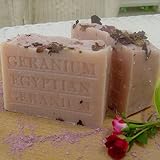 Large Limited Edition Aged SoapLimited Edition Soap Only 2 in Stock Large bar This is a wonderful aged soap that can be used not only in the shower or bath, But makes a wonderful decorative soap, custom hand stamped.Popular during the Victorian era, rose geranium was often kept potted in parlors were a fresh sprig was always available to revive the senses. .Our Geranium soap with French rose clay, cleans and balances the complexion by removing excess oils without drying your skin. French rose clay is good for those with either oily skin or dry congested skin.. The natural fragrance comes from the essential oil of Egyptian rose geranium, sweet, heavy aroma, sophisticated, fresh floral somewhat like rose with a minty overtone. Pelargonium graveolens, the rose-scented geranium, belongs to the same plant genus as the popular red-flowered window box geranium. Geraniums are native to arid areas of South Africa's Cape Province. The plant is highly drought resistant, thanks to its semi-succulent, water-conserving stems and leaves. Popular during the Victorian era, rose geranium was often kept potted in parlors were a fresh sprig was always available to revive the senses. The fresh leaves were also offered in finger bowls at formal dining tables. Today, geranium is an indispensable aromatherapy oil. It's one of the best skincare oils, offering relief from congested, oily and dry skin. On an emotional level, geranium promotes stability and balance. Our products never contain synthetic fragrance oils. Created with French rose clay to absorb dirt oil and toxins from the skin while it cleanses and tones for soft and radiant skin. Unlike other clays, French rose clay is mild enough to be use every day without drying out your skin . With a olive , palm, and coconut oil base and Shea butter added for richness, it makes this soap a wonderful soap with amazing lather and scent. Finally we fold in crushed flowers to make the soap a real mild natural exfoliant.
