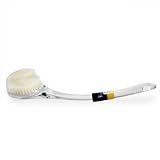 This nylon bristle bath and shower brush has a built in hanging hook for easy storage right on your shower curtain rod.